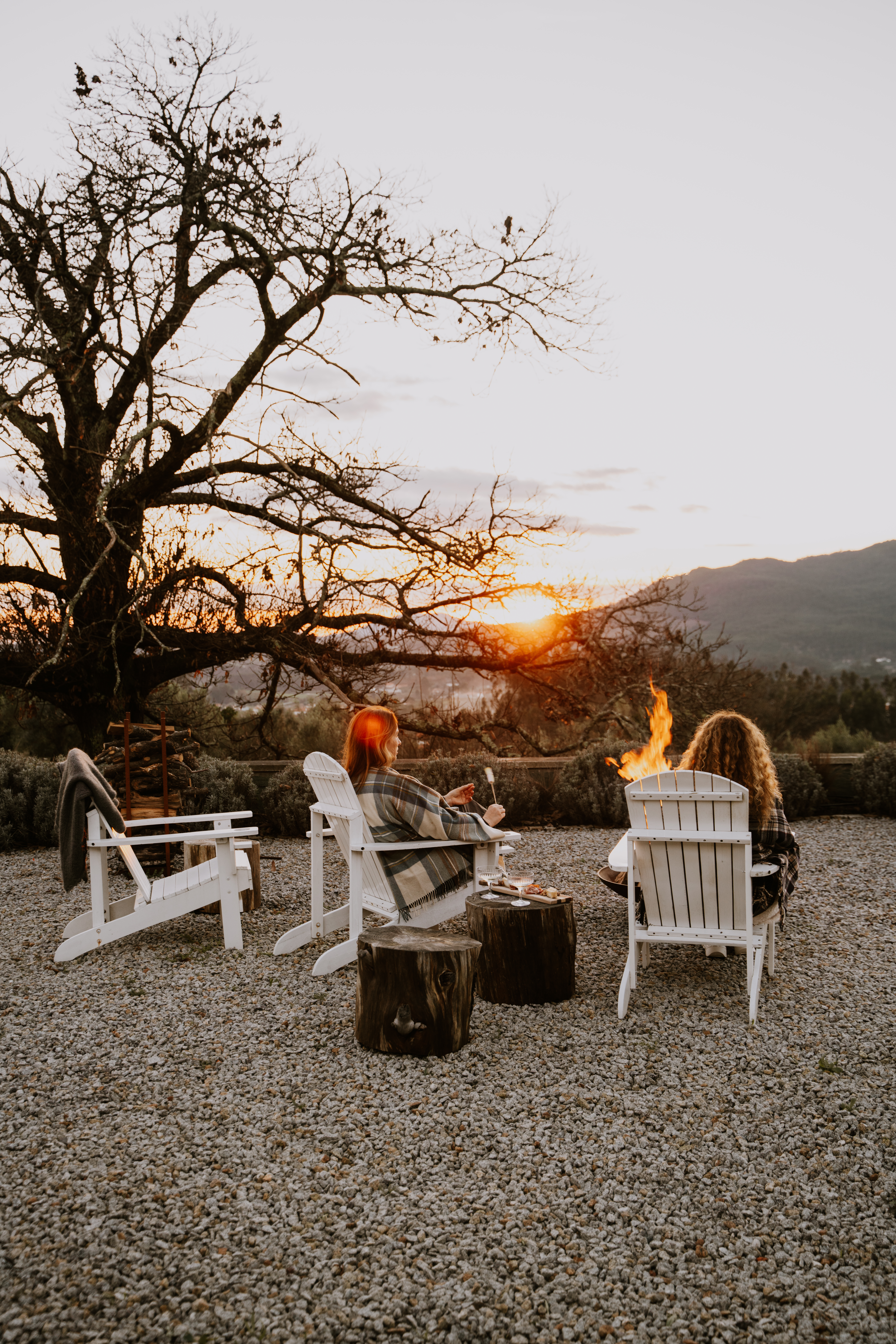 Design único, lareira e cadeira suspensa numa casa de dois andares com vistas deslumbrantes para uma vinha.