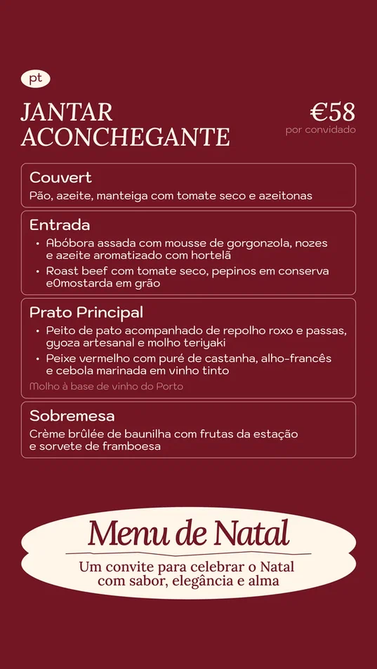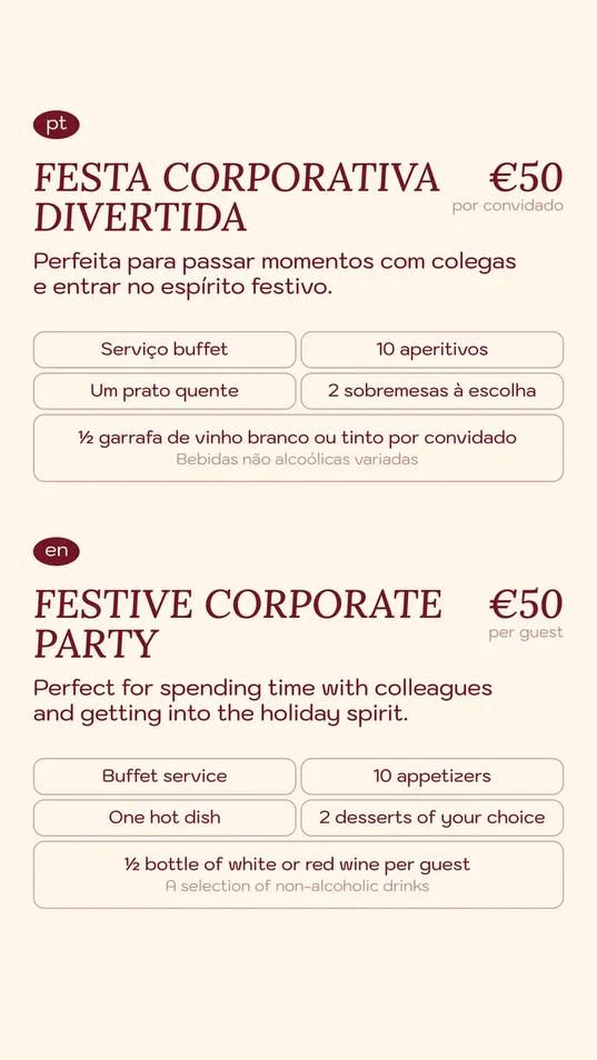Tudo o que resta é escolher a data e fazer a sua reserva. Esperamos por si para tornar este dezembro verdadeiramente especial!