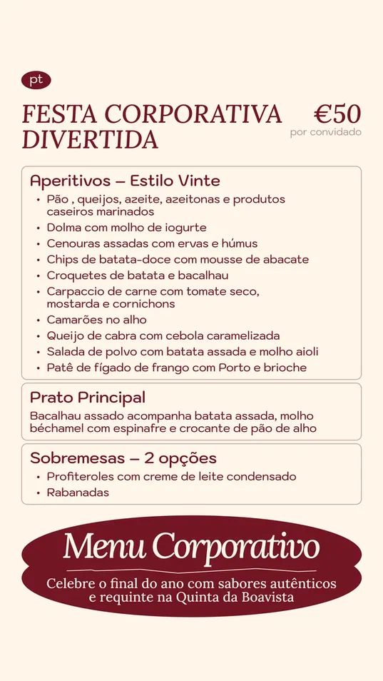 De 3 a 22 de dezembro, convidamo-lo a celebrar a época pré-natalícia na Vinte-Quinta da Boavista, rodeado por uma atmosfera festiva, luzes cintilantes e espírito natalício.